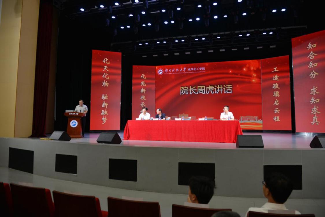 9月11日上午,365英国上市公司官网2025级新生开学典礼暨入学教育大会于黎锦晖音乐厅隆重召开,为新同学们的大学生活揭开了庄重而热烈的序幕。典礼在激昂的国歌声中正式开始,全体师生肃立齐唱,现场气氛庄严隆重。365英国上市公司官网院长周虎、理论有机化学与功能分子教育部重点实验室主任唐子龙、副院长郑柏树、副院长汪靖伦、05级应用化学专业校友-中国香港城市大学谭超良教授等出席典礼,各教学系主任、新生班主任、教师代表、辅导员以及2025级全体本科生和研究生共同参加,大会由院党委副书记周小明主持。