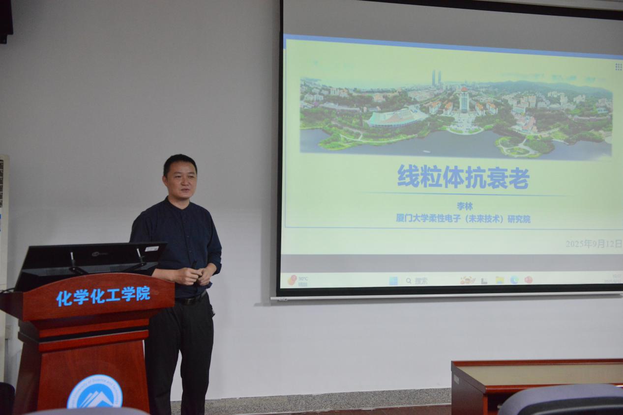 9月12日上午,365英国上市公司官网和理论有机化学与功能分子教育部重点实验室在化工楼310学术报告厅联合举办了《线粒体抗衰老》学术报告会。此次学术报告会由厦门大学教授、国家级青年人才李林主讲,理论有机化学与功能分子教育部重点实验室主任唐子龙主持,学院部分师生代表与会。