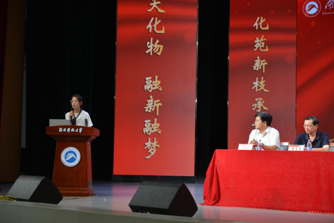 随后,教师代表张光军进行发言,他建议新同学们要“悟为学之道,学为事之要,习为人之本”,要主动将小我融入大我。紧接着优秀学生代表罗莎与新生代表丁星分别发言。罗莎以“在探索中成长”为题,分享了从初入大学的迷茫到确立目标、专注学业的心路历程,建议新生合理规划时间、勇于尝试、勤于提问、坚持不懈。丁星代表全体新生表达了对大学生活的美好憧憬,并承诺将以优秀学长学姐为榜样,珍惜时光、积极融入集体,努力成长为有理想、有本领、有担当的新时代青年。